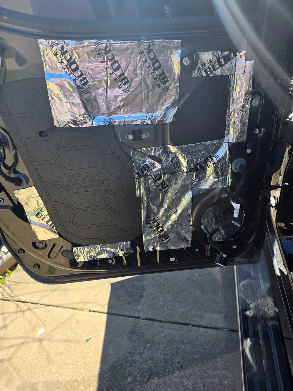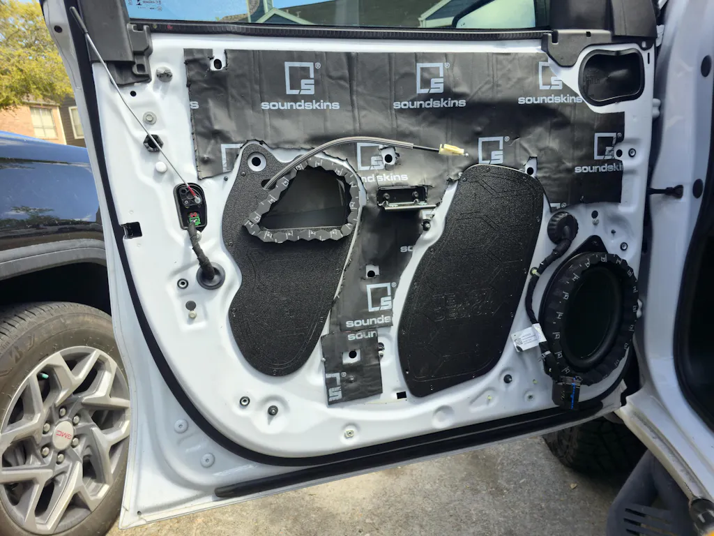 Day three: Installed sound treatment on both rear doors with block off plates. This completed the sound for me. I had no idea the factory system could sound this good. This sounds just as good as my Audi S6 that has the B&O upgraded system.. but it turns up higher, has more bass, and sounds cleaner!! The air noise I usually hear in the truck has been reduced quite a bit now and the doors shut with a premium sound (I know that sounds weird). I also have no rattling at all now, no matter the bass level.