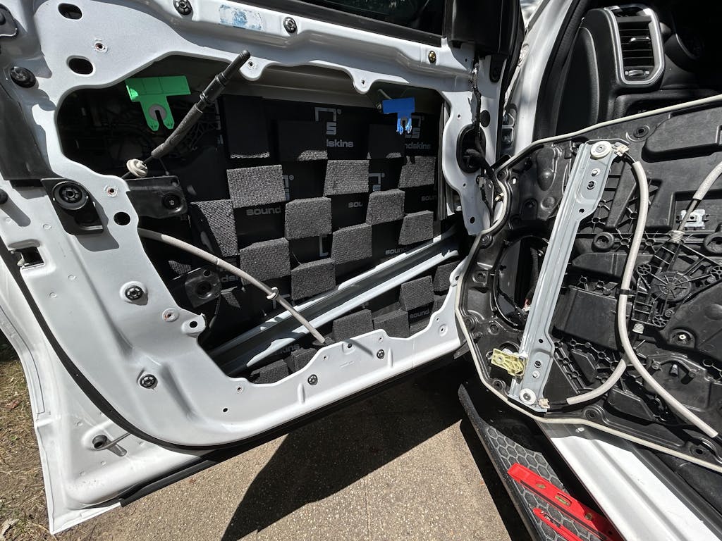 Did full sound deadening on truck. Easiest part of project was adding the black hole tile over CLD. Used 72 pack with 24 in each front door and 12 each in rears. Doors are very solid now.