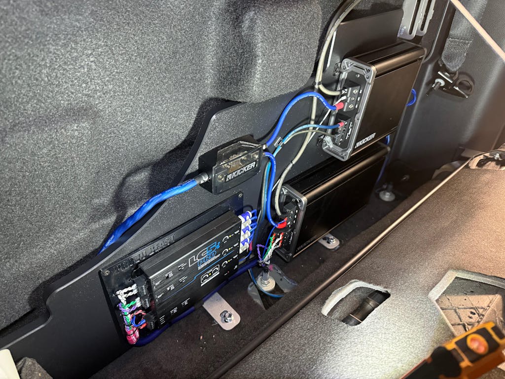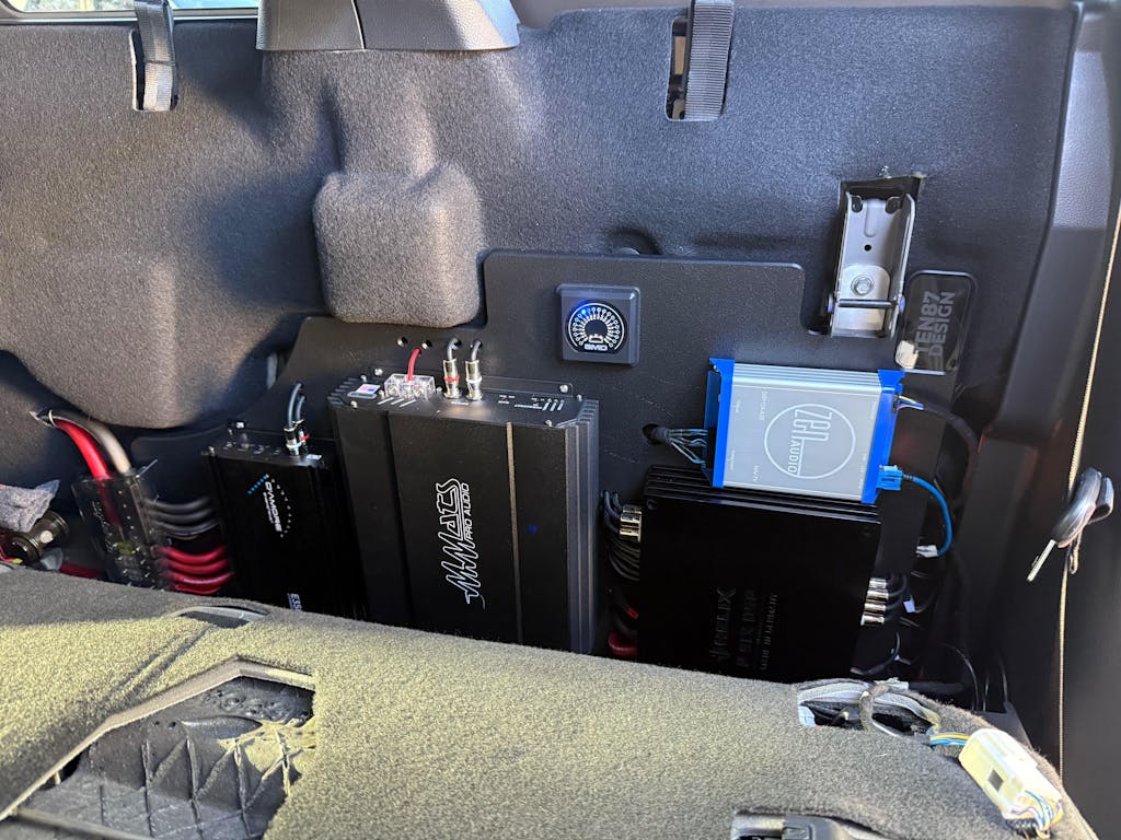 This amp rack is a no brainer and was a critical part of my build. Also, the guys at Sounds Good are awesome. Quality product, fits perfect, and made of really nice and thick HDPE plastic. It’s easy to mount a lot of gear on this thing and easy to work with for drilling and countersinking, etc. Really nice that it has some room behind it to hide your wiring too. I spent about 18 hours in full OCD wiring up and mounting all my amps/dsp. Wiring on back came out a little messy, but you can drill for zip ties to be hidden under your amps and hide wiring on back. Was really nice to work on everything outside the truck and then have it drop right in to place zero issues in like 10 minutes. Fit perfectly. Some things to note… pay attention to thicker amps. Best to mount them lower for more clearance, but also it is still a little tight when the seat folds up but it does lock in to place. Back seat pushes up against amps when folded up though so just be aware of this. If you plan to have seats folded up a lot, smaller less tall/thick amps may be the ticket. Also, if you have the seat heater module on the back of drivers side passenger seat pay attention to that. Mine landed right where my ZEN is mounted. Clears fine in normal position but needed to be bent in towards the seat slightly for when the seat folds up. Long story short, thanks you guys and this amp rack was worth every penny for perfect fitment in my 22’ Raptor.