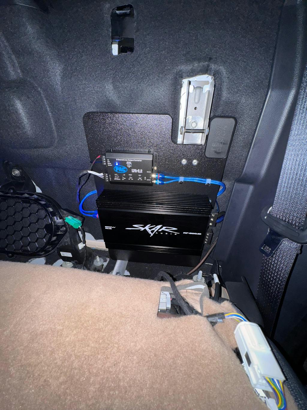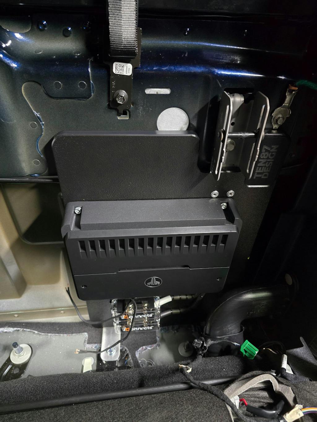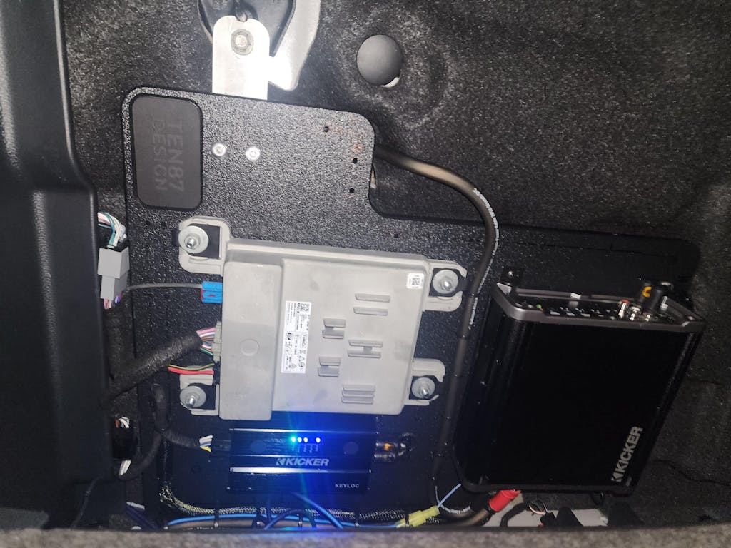 First 2025 has the amp behind the carpet on the passenger side. I tried using this board over the carpet leaving the amp in its stock location and it would not fit without applying extreme force to the factory amp. If you want to keep your B&O amp intact remove it and place it on the board. I found the upper right to be the best spot where I could reach all factory harnesses without cutting or pulling the harness.