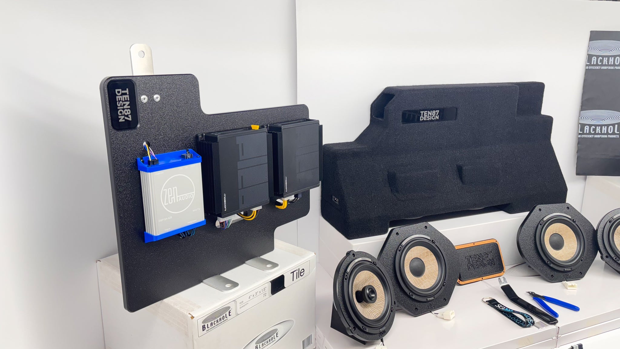 • ~ Mosconi Pico Series Class D amplifiers—1,420 watts of exceptional power, sound quality, and compact design for our behind-the-seat packages